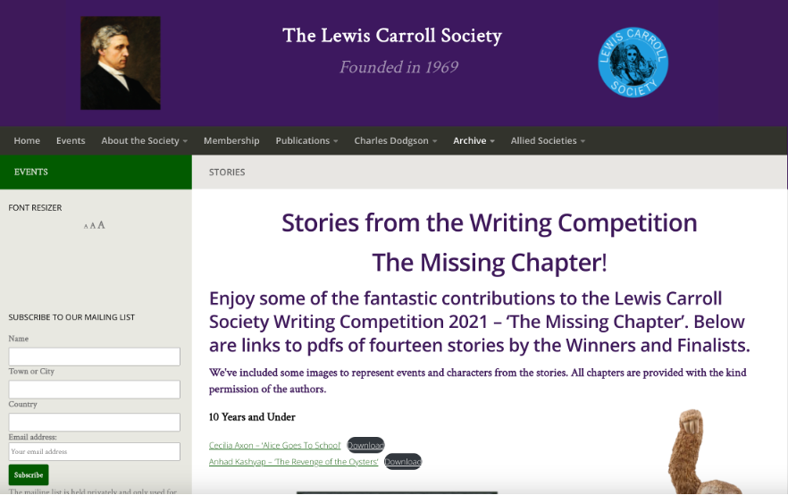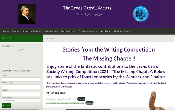 Winner and acknowledged by the President Brian Sibley for poem Revenge of the Oysters